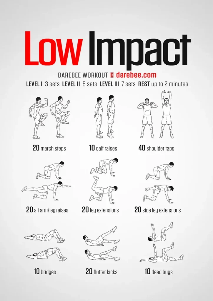 Conclusion: Low-Impact Exercise offers a flexible, inclusive pathway to better health that fits into daily life. By prioritizing joint-friendly movements, no-equipment options, and adaptable routines you can do anywhere, you empower yourself to build fitness without fear of injury. Whether you are a complete beginner, recovering from an injury, or simply seeking sustainable habits, prioritizing Low-Impact Exercise can lead to improvements in cardiovascular health, mobility, and mood. Start small, stay consistent, and gradually expand your routine as you feel stronger.